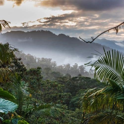 Kurz vor Papallacta fahren wir weiter in unserem Kleinbus von den Hochanden ins dampfende Amazonas-Einzugsgebiet. Hier geht es nun im Kanu weiter den Rio Napo entlang, der sich wie eine riesige Schlange im Zickzack durch den Dschungel zieht und als das Hauptsystem der Pacha Mama (Mutter Erde) gilt. Sobald wir in unserer Dschungellodge angekommen sind, erhalten wir von unserem indigenen Naturführer eine kleine Einführung und beziehen unsere einfachen Zimmer.